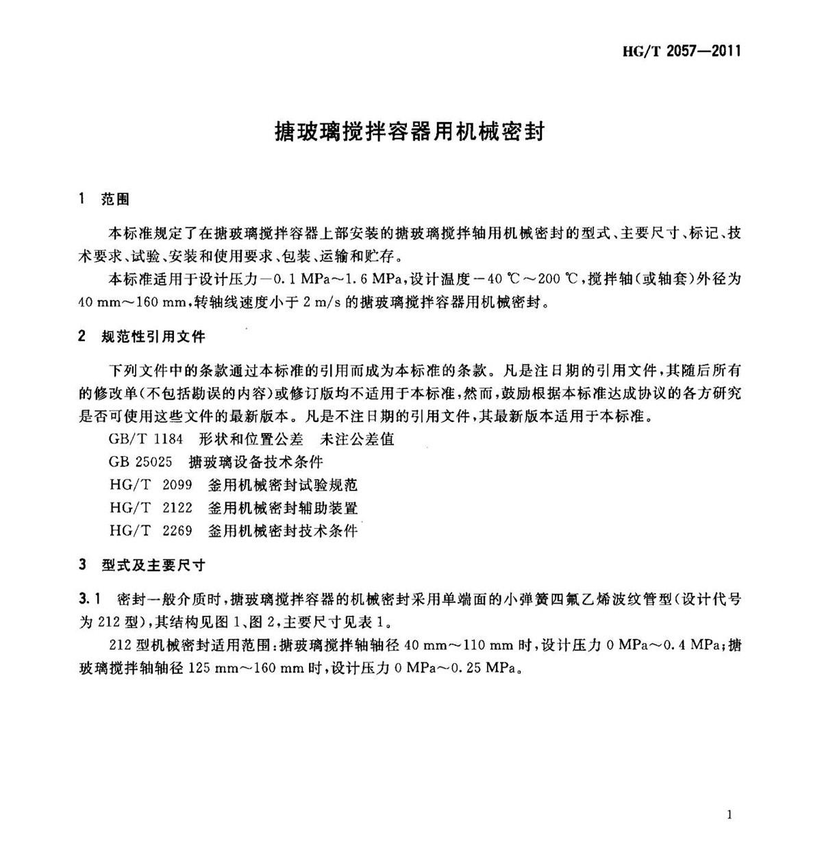 HGT2057-2011搪玻璃攪拌容器用機械密封