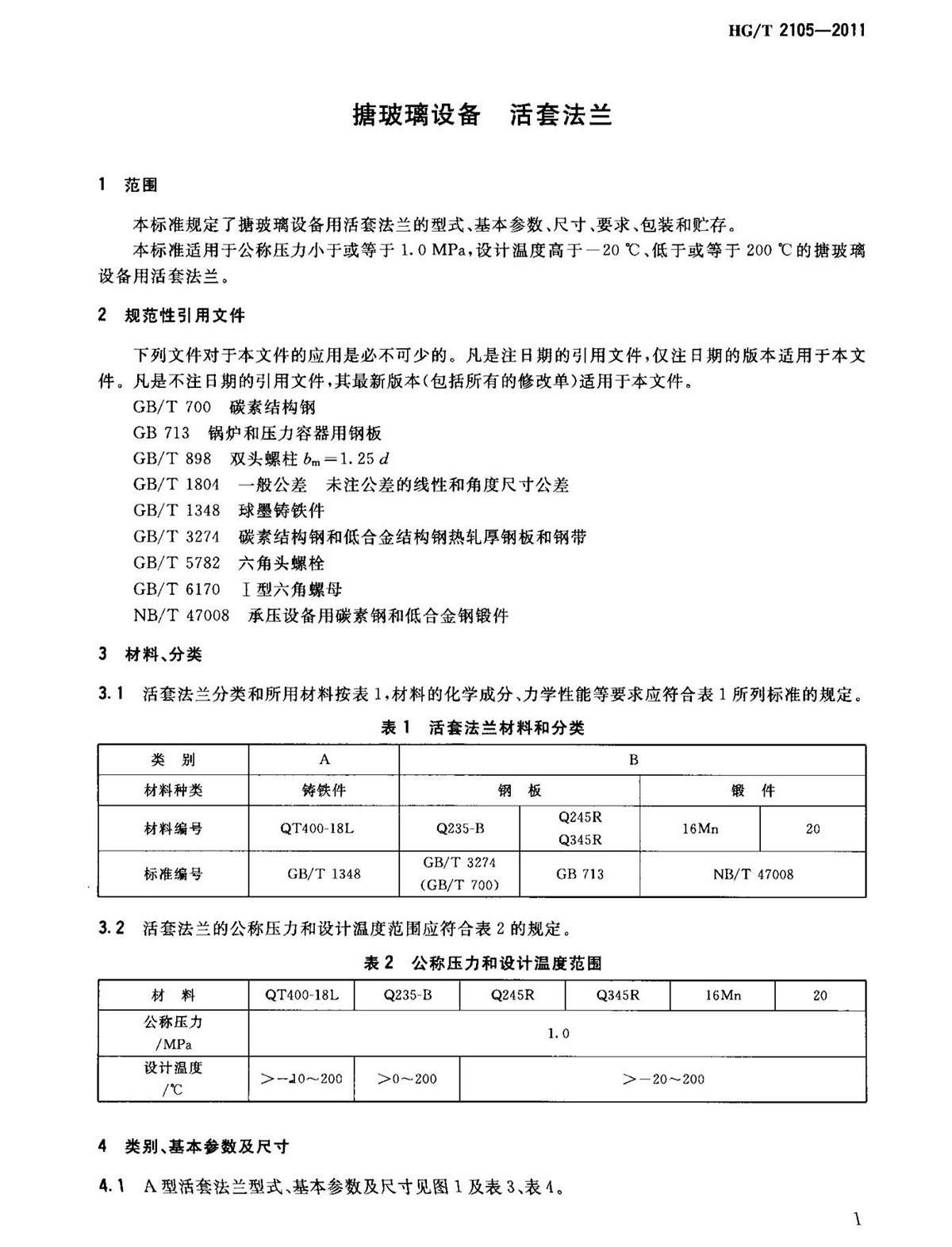 HGT2105-2011搪玻璃設備活套法蘭