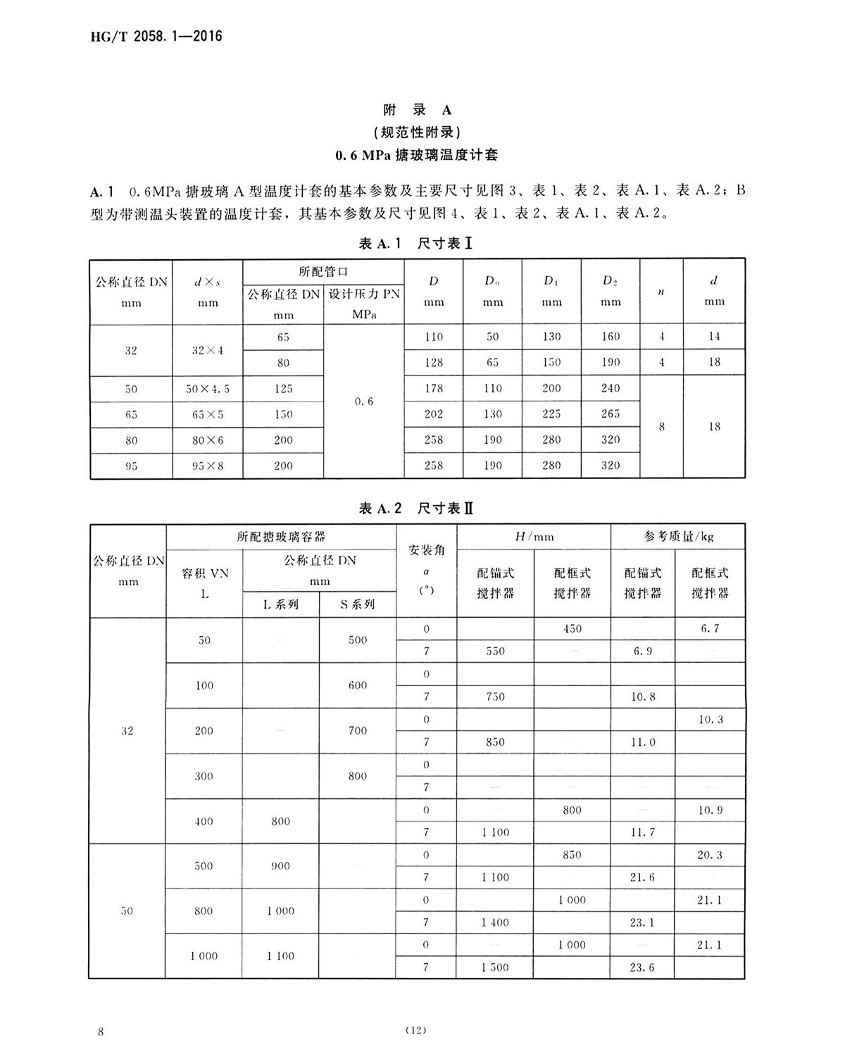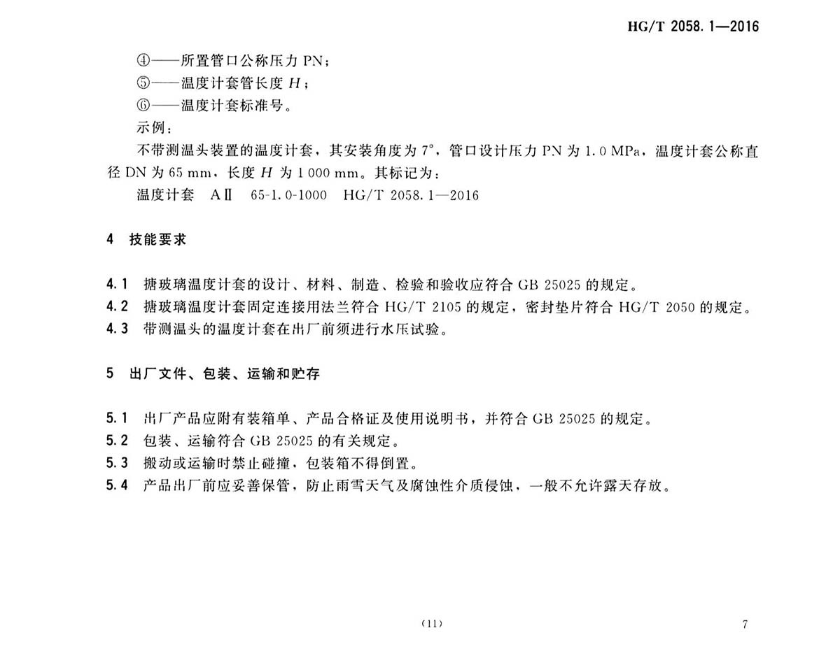 HG-T-2058.1-2016搪玻璃溫度計(jì)套