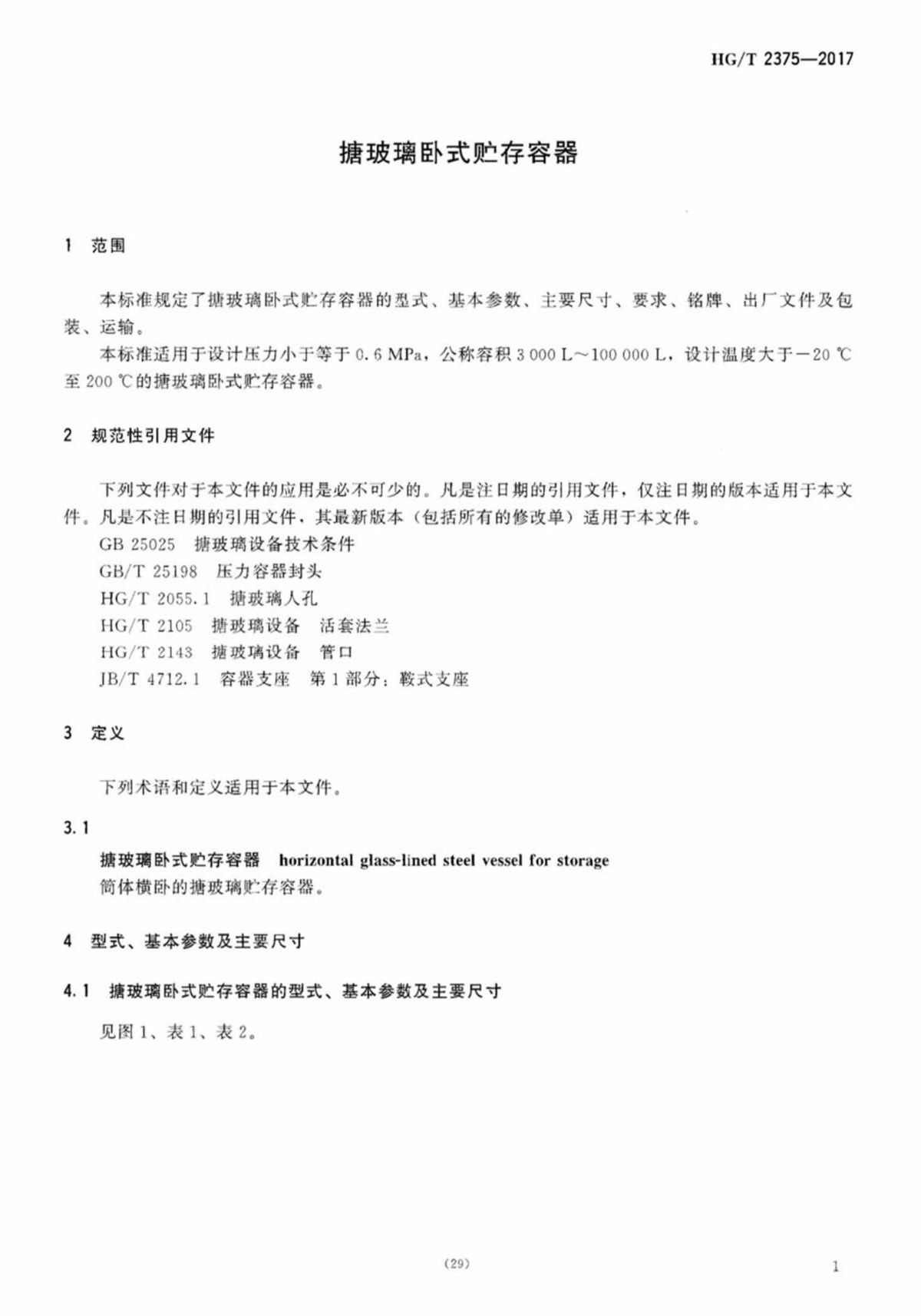 HG-T-2375-2017搪玻璃臥式貯存容器