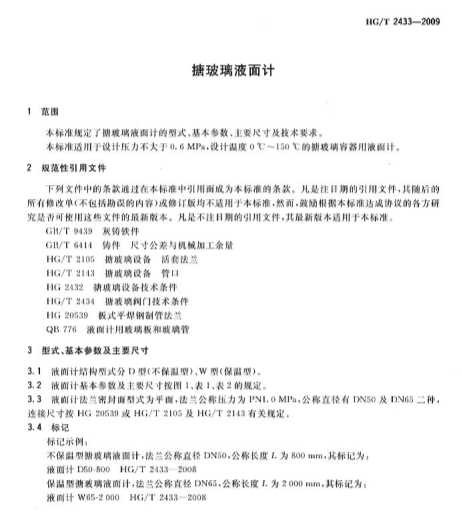 HG-T-2433-2009搪玻璃液面計
